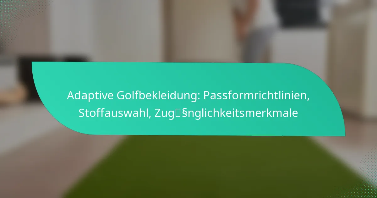 Die Passformrichtlinien für adaptive Golfbekleidung konzentrieren sich darauf, Komfort, Beweglichkeit und Zugänglichkeit für verschiedene Körpertypen zu gewährleisten. Eine richtige Passform kann die Leistung auf dem Platz verbessern und spezifische Bedürfnisse berücksichtigen, weshalb es wichtig ist, diese Faktoren bei der Auswahl der Bekleidung zu beachten.